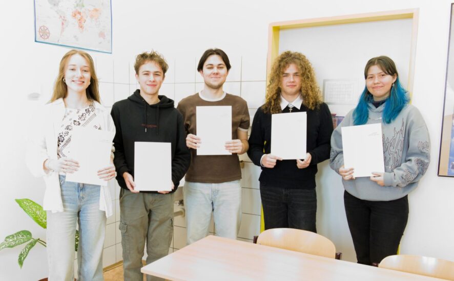 ÖSD certifikát je mezinárodně uznávaná zkouška z němčiny, která studentům zajistí reálné využití jazyka v budoucím životě, například v zaměstnání. Tu v sobotu 14. února skládali žáci napříč gymnáziem na úrovních B1, B2 a C1. Zkouška měla dohromady čtyři části: poslech (Hören), psaní (Schreiben), porozumění textu (Leseverstehen) a mluvení (Sprechen). Své certifikáty si v pátek 20. března slavnostně převzali Alžběta Moslerová (kvinta), Bonifác Smíšek, Ondřej Žifčik, Kateřina Korbelíková, Tomáš Poskočil, Jakub Vaněk a Martin Hrubec (všichni oktáva).